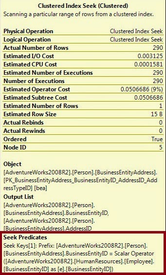 The data Scan at Employee Table and the Seek against the BusinessEntityAddress table is join at Nested Loop Join operation. To understand it properly we have to look at the tooltip or property of the Nested Loop Join.
